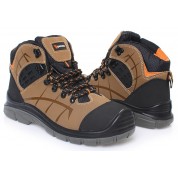 Trzewiki bezpieczne GALAXY S3 SRC ze stalowym podnoskiem ochronnym odpornym na uderzenia z energią 200 J i zgniecenia 15kN oraz stalową wkładką antyprzebiciową chroniącą stopę przed przekłuciem o sile 1100N. Cholewka obuwia wykonana jest ze skóry nubukowej. Podeszwa antypoślizgowa z dwugęstościowego poliuretanu PU/PU, antyelektrostatyczna, olejoodporna. Klasa odporności na poślizg SRC. Absorpcja energii w części piętowej. Wyściółka z oddychającego materiału 3D Mesh. Nowoczesny design.