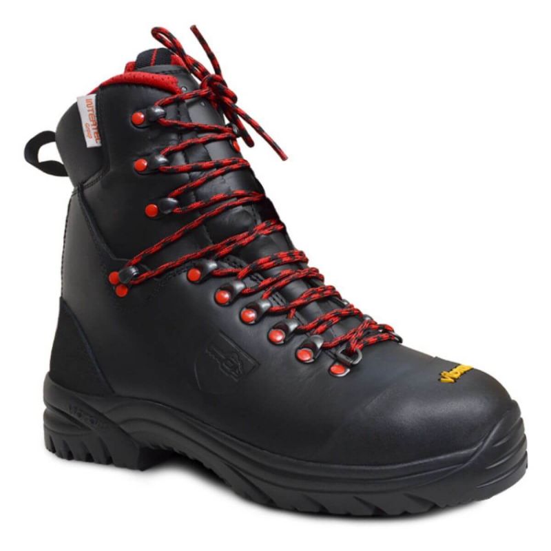 Obuwie pilarskie Black o właściwościach antyprzecięciowych ze stalowym podnoskiem przeznaczone dla drwali, pilarzy i innych branż w których występuje ryzyko przecięcia stopy. Dzięki właściwościom ochronnym chroni operatora piły spalinowej przed urazem. Wysokiej jakości materiały zabezpieczają przed czynnikami atmosferycznymi. Wysoka cholewka chroni natomiast kostkę użytkownika przed kontuzjami. Wygodna miękka cholewka o właściwościach oddychających poprawia komfort użytkowania. Podeszwa HRO wytworzona z gumy nitrylowej wykazująca odporność na duże temperatury, antystatyczne, olejoodporne i antypoślizgowa. Całość uzupełnia jeszcze wkładka antyprzebiciowa ochraniająca przed skaleczeniem ostrymi elementami z podłoża