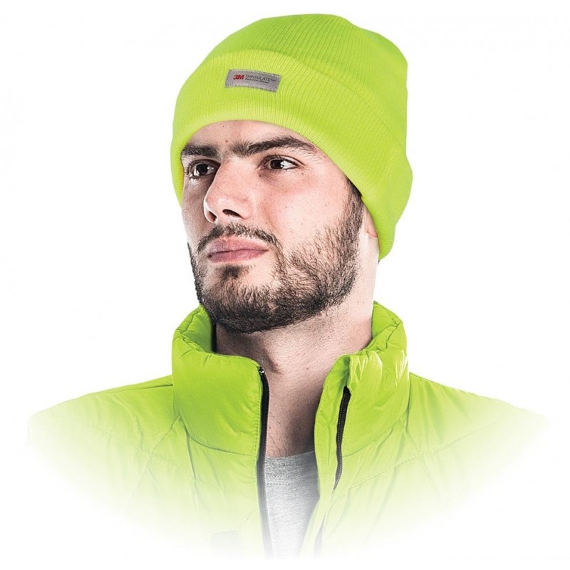 Czapka zimowa dziana w kolorze fluorescencyjnym.
