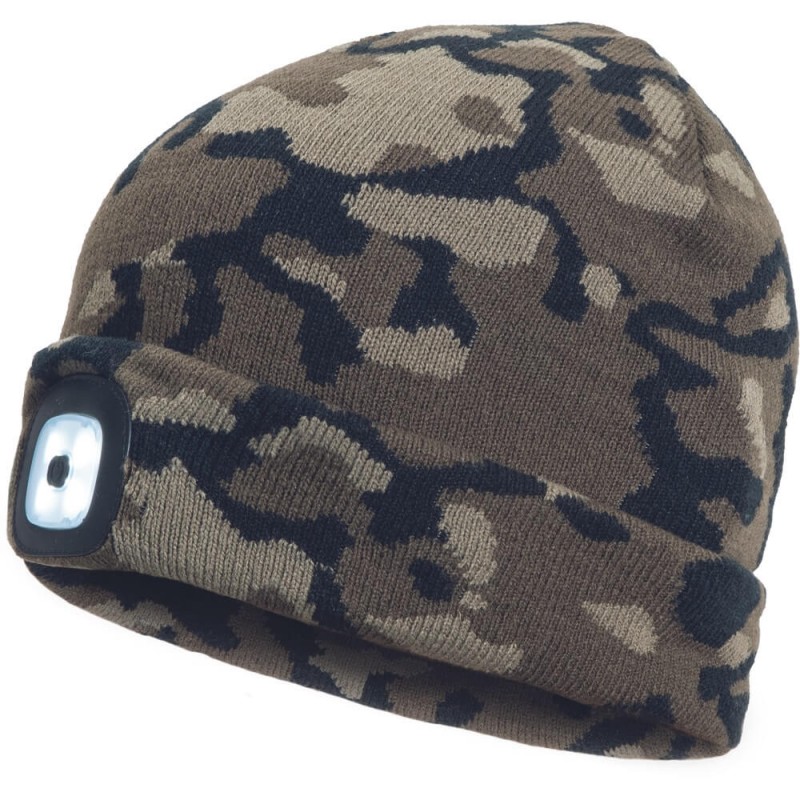 DEEL marki Cerva to wygodna zimowa czapka z lampką w kolorze zielony moro. Idealna do pracy, na wyprawy leśnie i do innych zastosowań. Wysokiej jakości dzianinowa czapka ze zintegrowaną lampą LED