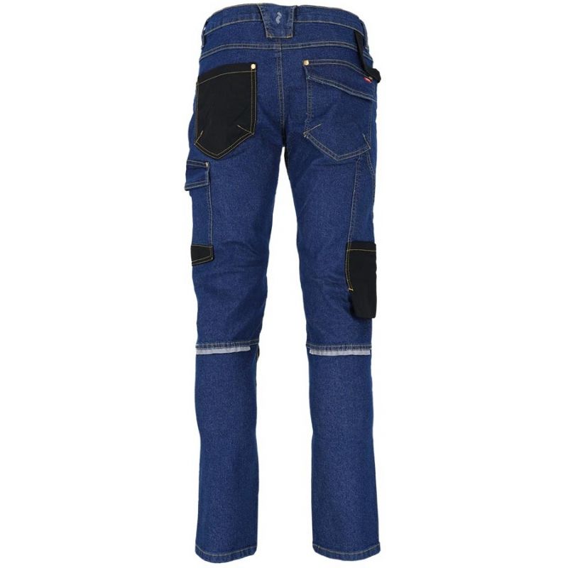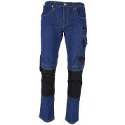 Elastyczne spodnie ochronne do pasa wykonane z jeansu.