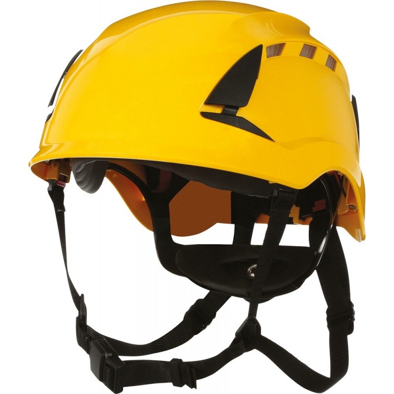 -unikalny 4-punktowy pasek podbródkowy z przełącznikiem między normami EN, pozwala przełączać się tak, aby hełm spełniał wymagania norm EN 12492 lub EN 397