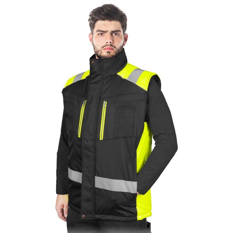 Bezrękawnik ochronny ASKER-V BSE w kolorze czarno-seledynowym z dodatkowymi elementami odblaskowymi zwiększającymi widoczność. Wyposażony w odsuwany kaptur pozwalający na jeszcze lepszą ochronę przed chłodem. Ciepła podszewka pozwoli zachować komfort termiczny nawet przy obniżonych temperaturach