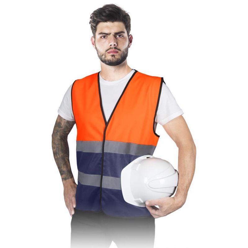 Kamizelka ostrzegawcza z pasami odblaskowymi KOS-DOUBLE PG kolor pomarańczowy + granatowy.