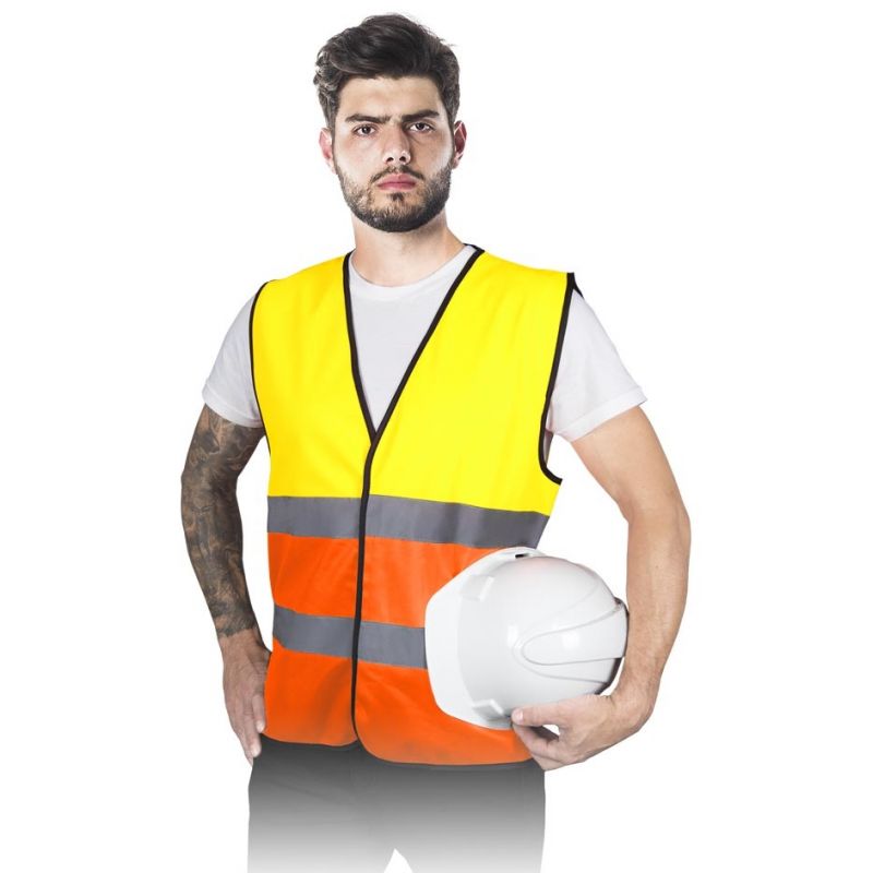 Kamizelka ostrzegawcza z pasami odblaskowymi KOS-DOUBLE YP kolor żółty + pomarańczowy.