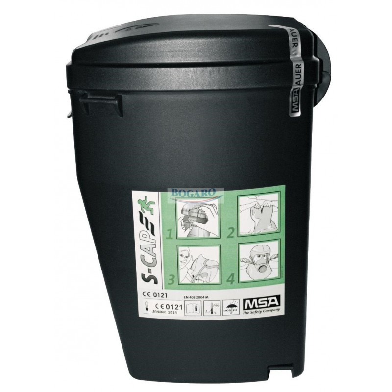 Kaptur ucieczkowy S-Cap w pojemniku. - w jednym pojemniku znajdują się dwa kaptury - zaprojektowany do ochrony osób zagrożonych dymem i gazami powstającymi podczas pożaru