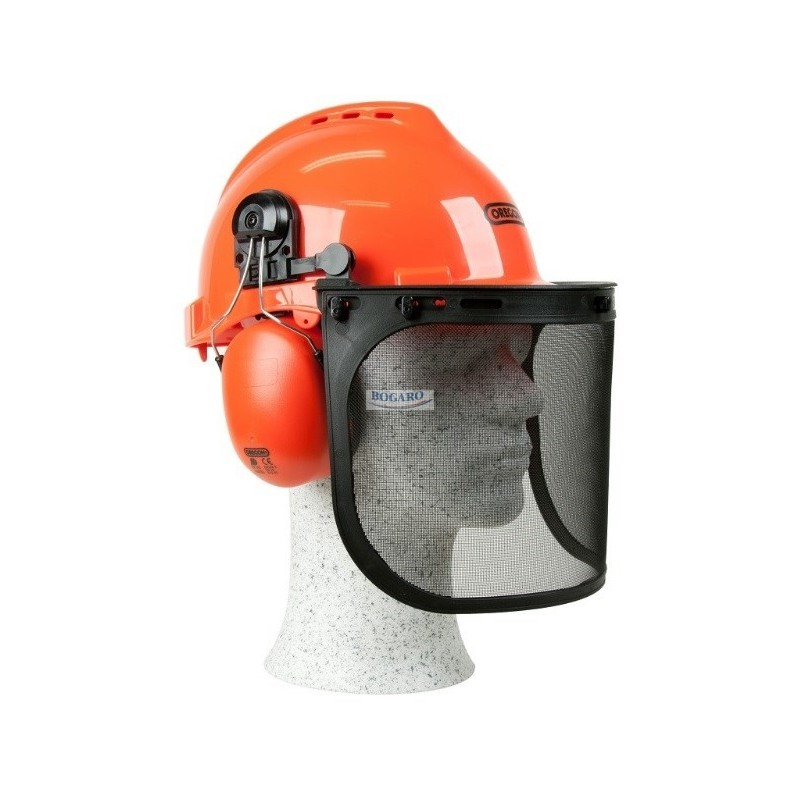 Kask dla pilarza atestowany - kompletny kask ochronny - nauszniki - ochrona słuchu EN 352-1 - siatka ochronna metalowa - regulowana osłona twarzy zgodna z EN 166 oraz EN 1731