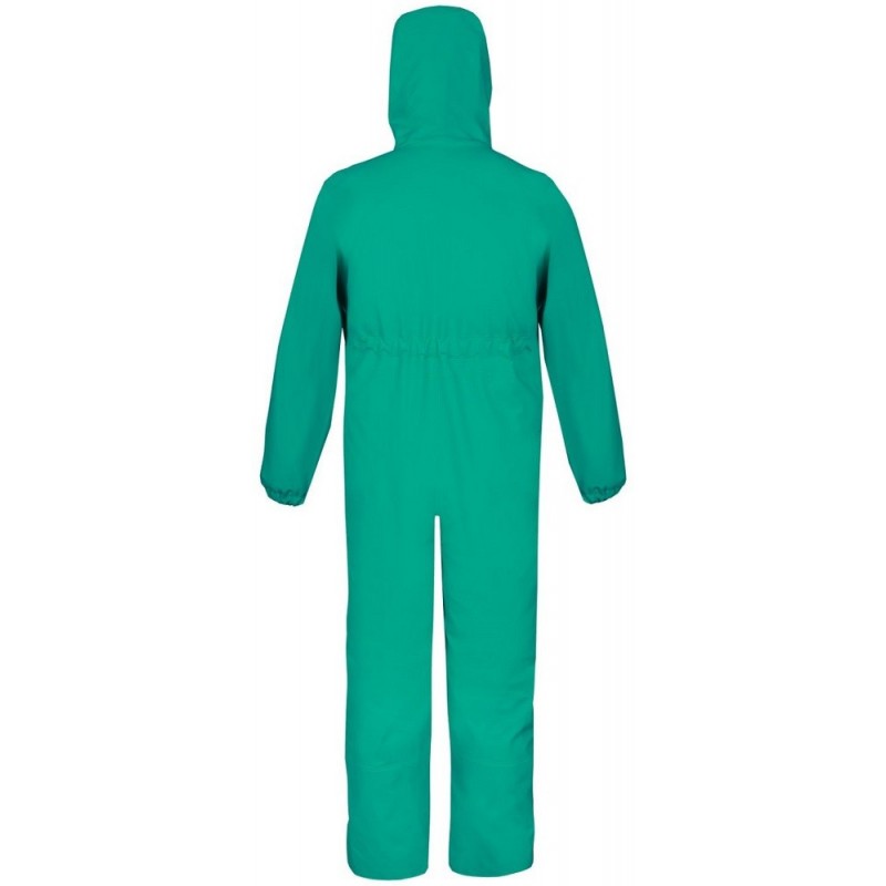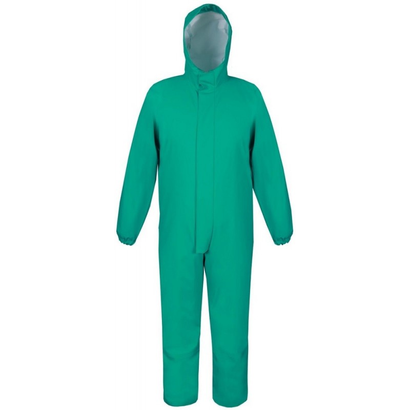 Kombinezon dedykowany do możliwego kontaktu z kwasami i zasadami. Chroni przed wiatrem i deszczem. Wykonany z materiału o wysokiej elastyczności i zwiększonej odporności na substancje chemiczne. Technika obustronnego zgrzewania zwiększa wytrzymałość szwów. Praktyczne zapinanie na zamek kryty plisą. Użytkownicy docenią manszety w rękawach i nogawkach poprawiające szczelność ubrania oraz ściągacz na plecach i regulowany kaptur.
