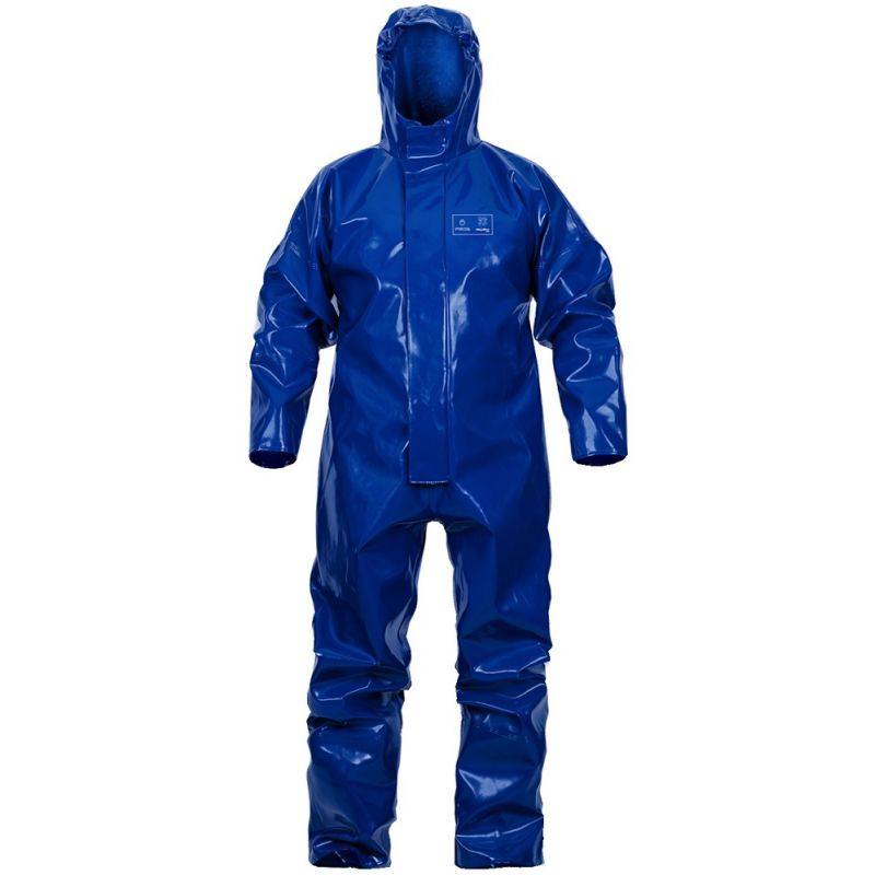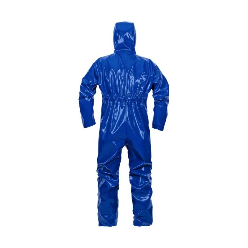Kombinezon z kapturem wykonany techniką obustronnego zgrzewania, co skutecznie zwiększa wytrzymałość szwów. Dedykowany dla przemysłu chemicznego, szczególnie do prac w kontakcie ze żrącymi substancjami. Funkcjonalność produktu podnoszą manszety w rękawach i nogawkach oraz ściągacz w pasie na plecach.