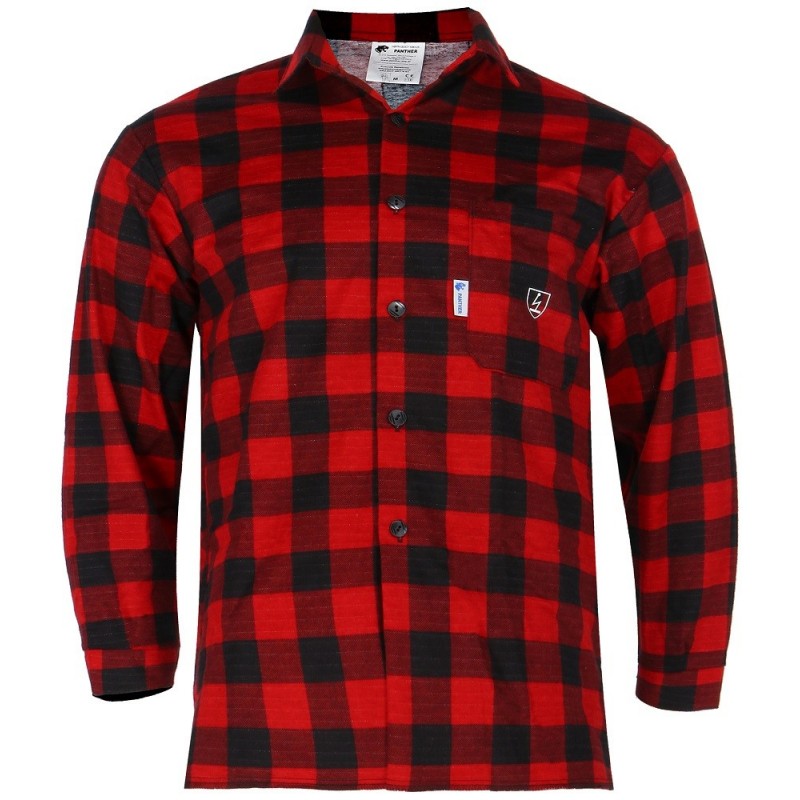 Koszula flanelowa antyelektrostatyczna PANTHER GRZMOT polskiej produkcji w kolorze czerwonym przeznaczona do pracy w środowisku zagrożenia wybuchem i innymi niebezpiecznymi czynnikami. Obowiązkowy element przy kontakcie z gazem, prądem itp. Odzież odszyta z tkaniny flanelowej o właściwościach antyelektrostatycznych skutecznie odprowadza ładunki elektryczne chroniąc przez wyładowaniami iskrowymi. Dzięki zastosowanym materiałem koszula jest bardzo trwała i wytrzymała. Główne zastosowanie ma w przemyśle górniczym, paliwowym oraz gazowym. Poza właściwościami ochronnymi charakteryzuje się wysokim komfortem użytkowania.