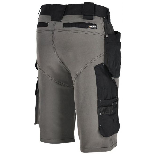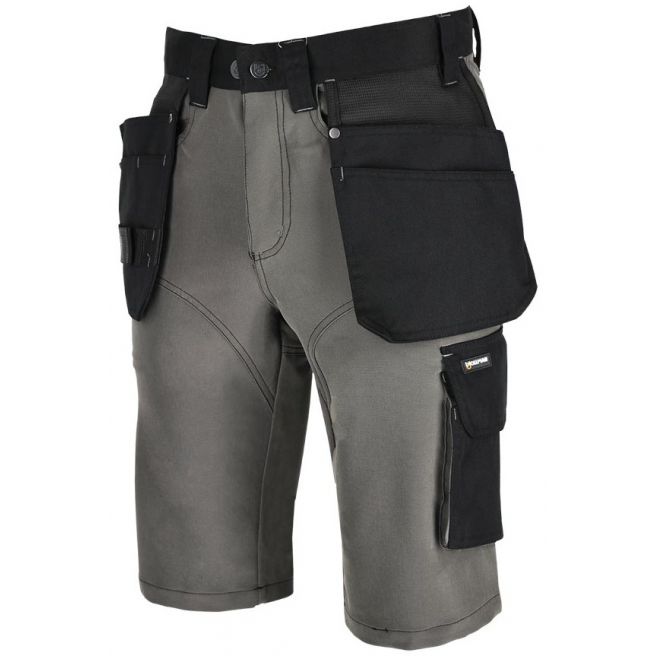 - dwie kieszenie boczne, dwie podwójne kieszenie monterskie, w tym jedna z przegródkami oraz dwie tylne