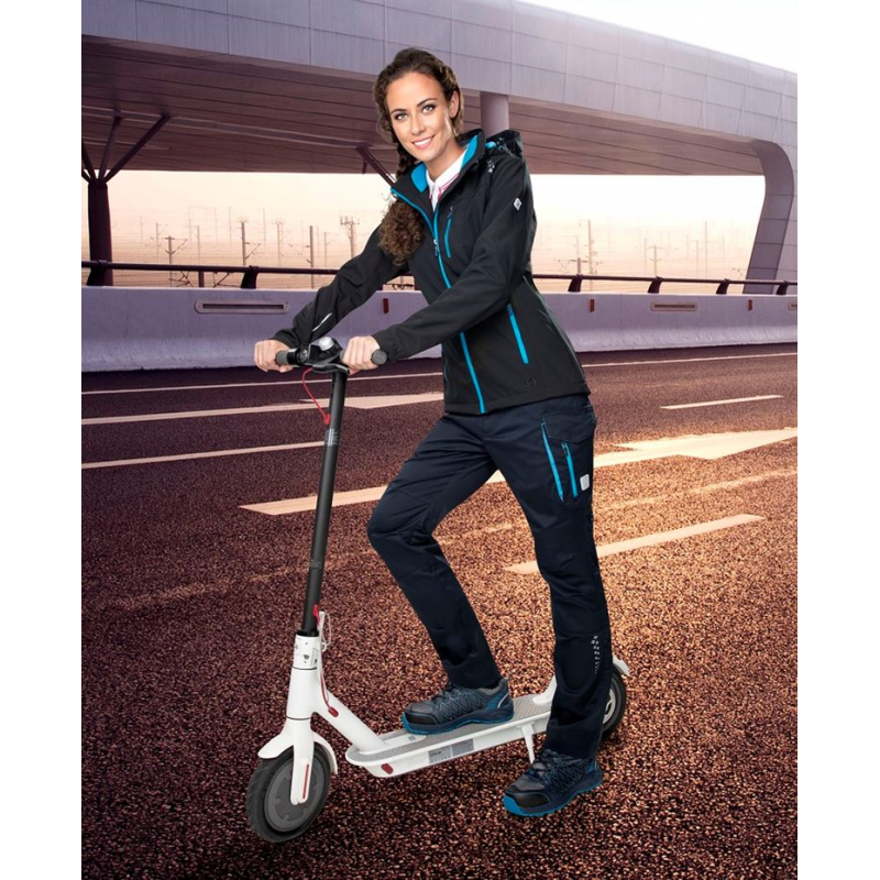 Damska kurtka softshellowa FLORET Ardon w kolorze czarno-błękitnym z odpinanym kapturem. W prezentowanym produkcie zastosowano delikatnie tłoczony krój podkreślający figurę i sprawiający, że kurtka świetnie dopasowuje się do sylwetki. Produkt całkowicie wodoodporny, posiadający membranę TPU. Całość uzupełnia jeszcze ciepła podszewka, która wykonano z poliestrowego mikropolaru