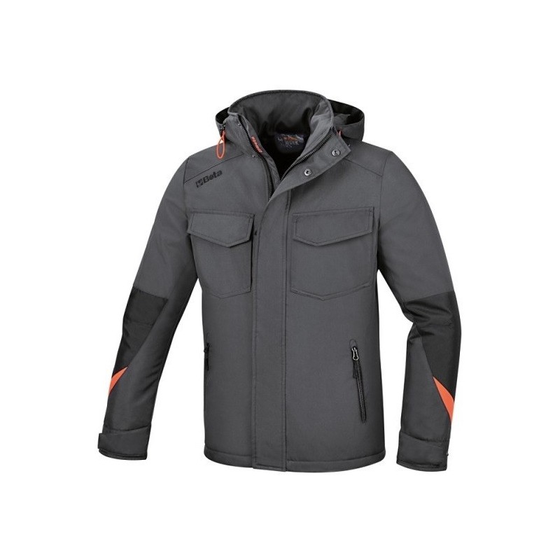 Z odpinanym kapturem i wzmocnionymi rękawami.