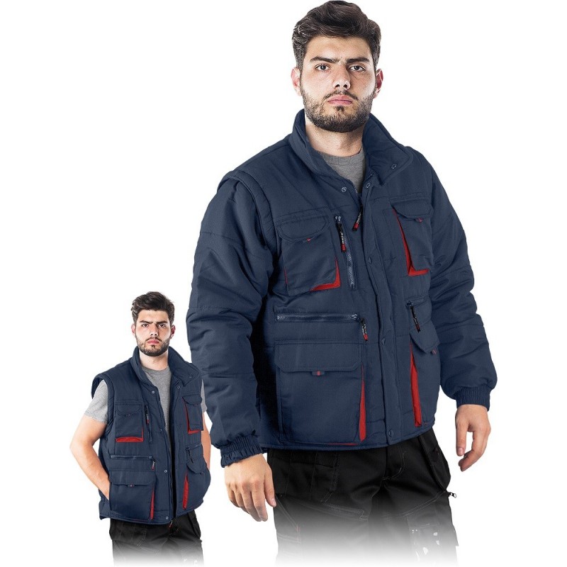 Ocieplana kurtka zimowa typu 2w1 z odpinanymi rękawami CZAPLA2 Reis to praktyczny model łączący w sobie klasyczną kurtkę roboczą z bezrękawnikiem. Wewnętrzna kieszeń pozwoli bezpiecznie przechować przedmioty, a liczne kieszenie zewnętrzne pozwolą mieć zawsze pod ręką to co niezbędne w czasie pracy. Przedłużany tył kurtki zapewnia jeszcze lepszą osłonę przed wiatrem i chłodem, nawet w czasie wykonywania prac w zmiennej pozycji ciała.