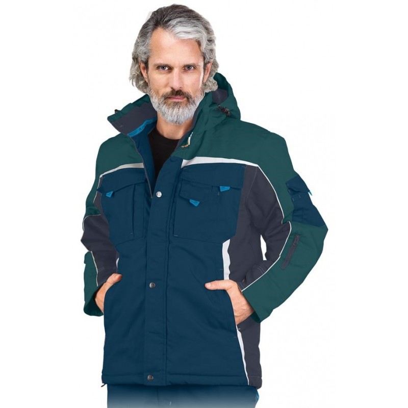Męska zimowa kurtka robocza z ociepleniem LH-NAW-J z linii NEW AGE Reis wykonana z materiału typu Canvas. Dzięki zastosowaniu specjalnym wstawek z Cordury kurtka została dodatkowo wzmocniona. Liczne kieszenie użytkowe oraz kaptur ochronny zwiększają praktycznośc tego modelu.