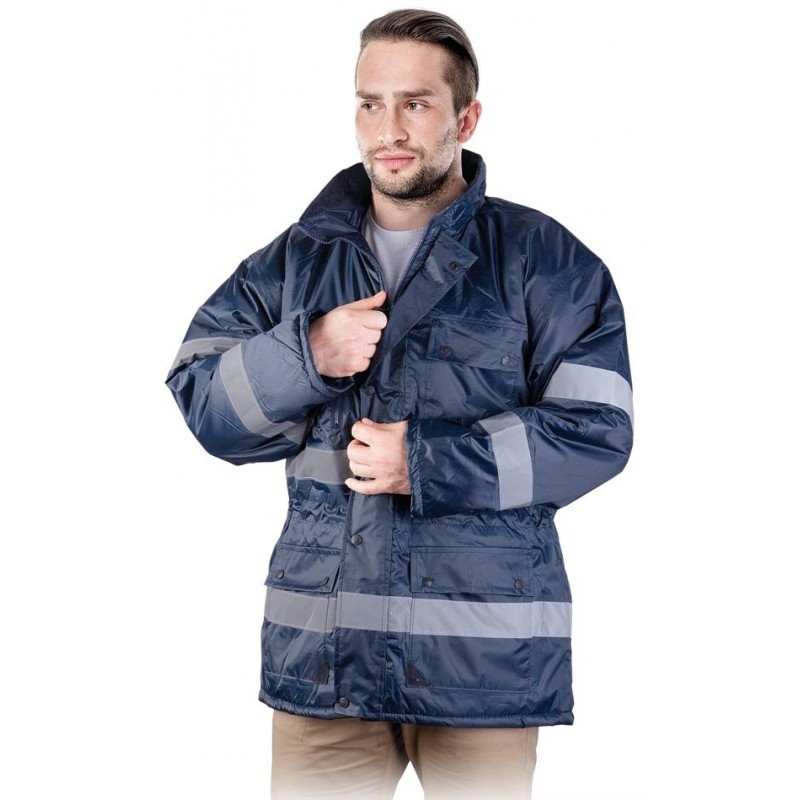 Kurtka zimowa z pasami odblaskowymi.