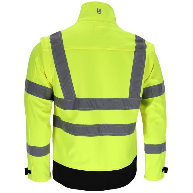 - tkanina we fluorescencyjnym kolorze i pasy odblaskowe zwiększające widoczność