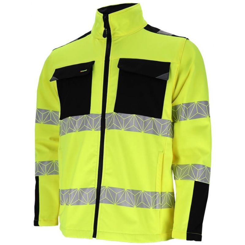 - tkanina we fluorescencyjnym kolorze i pasy odblaskowe zwiększające widoczność