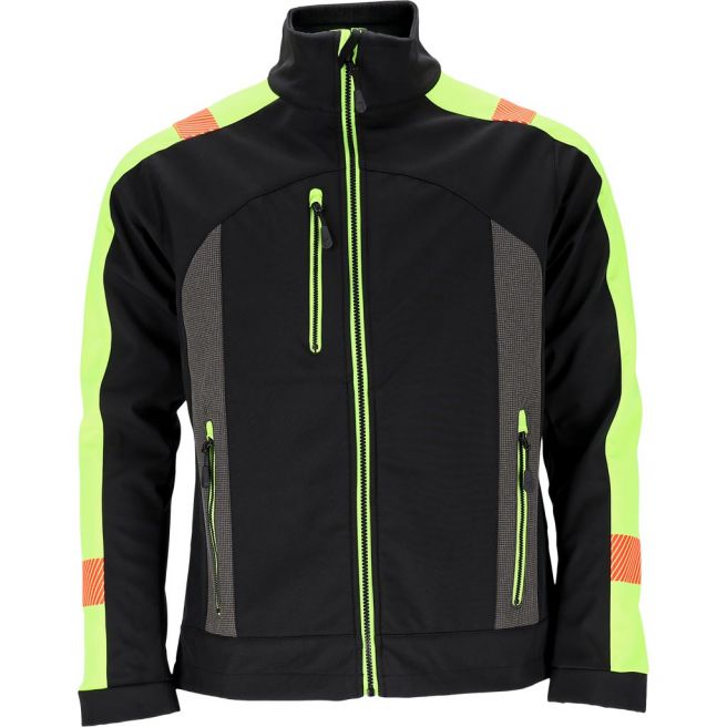 - żółte wstawki: trójwarstwowa tkanina softshell 100% poliester, membrana TPU, polar 100% poliester o gramaturze 280 g/m2