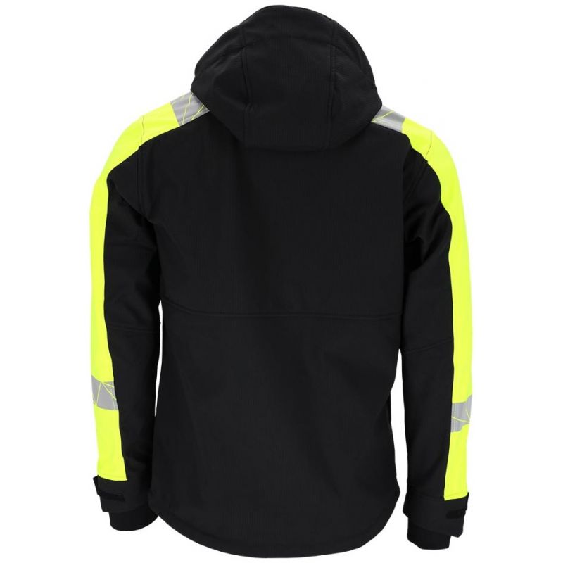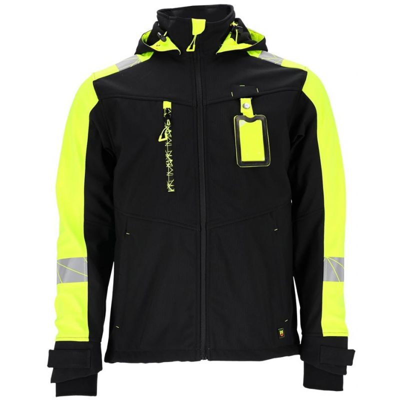 - trójwarstwowa tkanina softshell z 2-kierunkowego stretchu o splocie rip-stop: 100% poliester, membrana TPU, polar 100% poliester