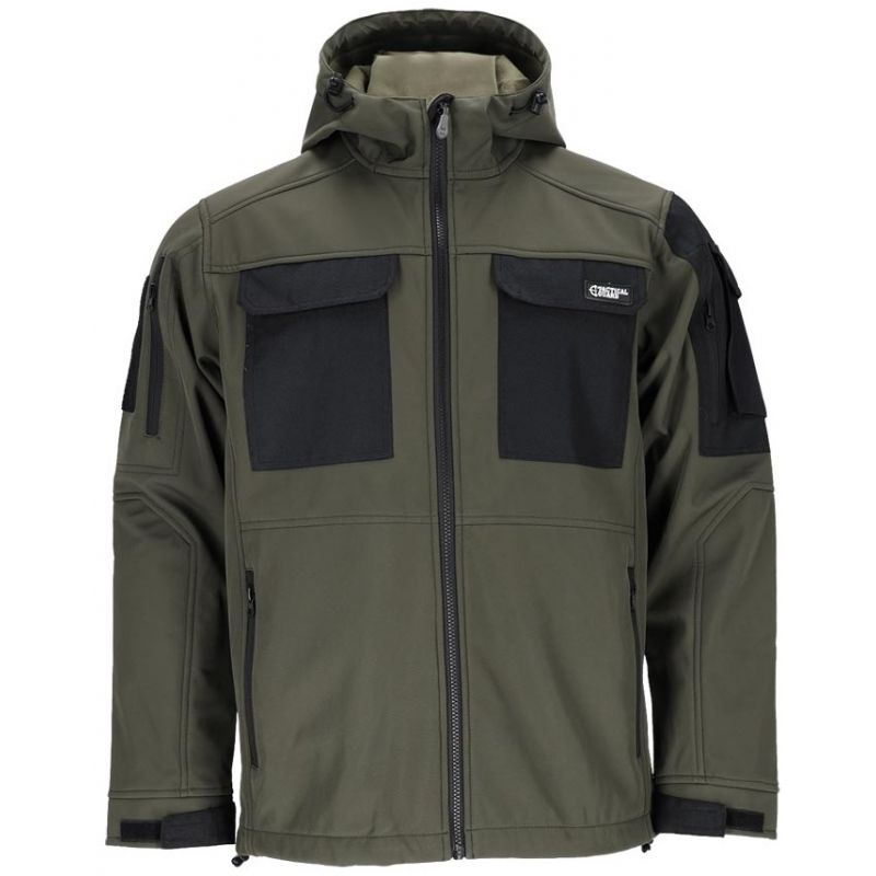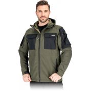 - materiał główny: trójwarstwowa tkanina softshell 96% poliester, 4% elastan, membrana TPU, polar 100% poliester o gramaturze 280 g/m2