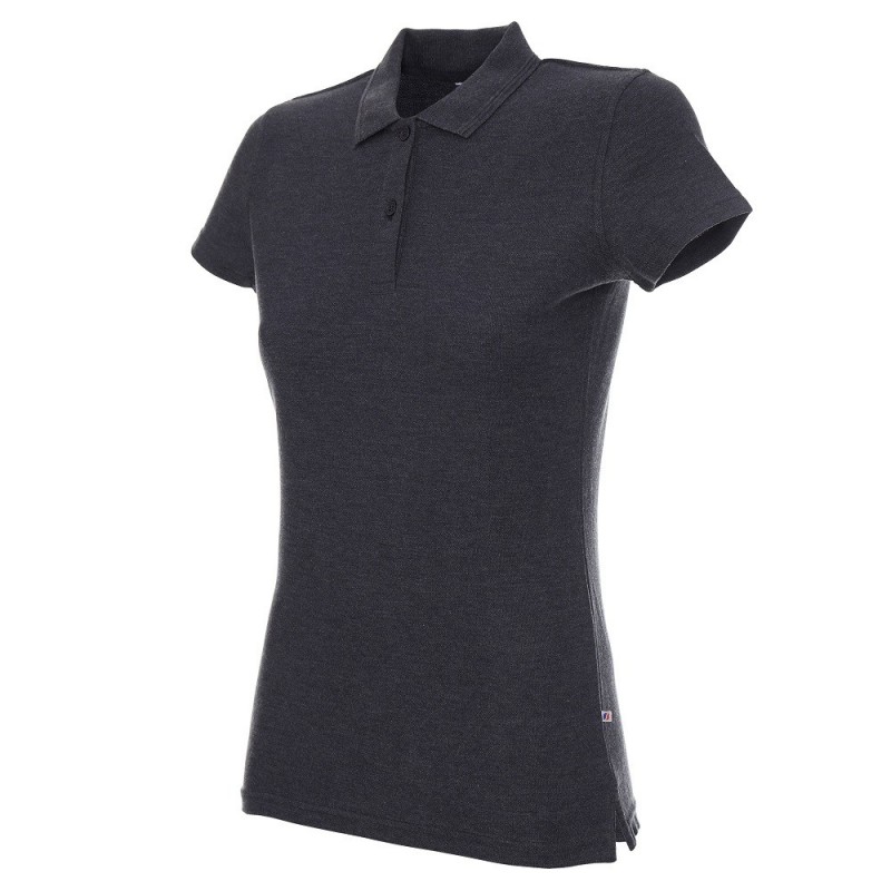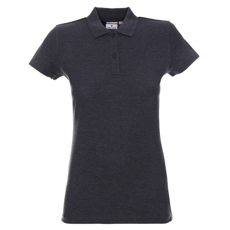 Damska koszulka polo Promostars Ladies Cotton 42195 w kolorze grafitowym. Wykonana z wygodnych i jednoczesnie wytrzymałych materiałów. Taliowany krój doskonale dopasowuje się do damskej sylwetki. Doskonała odzież również pod znakowanie firmowym logo