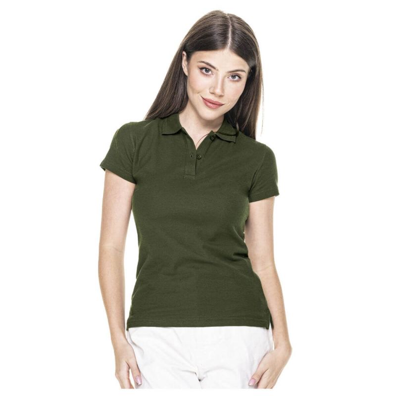 Damska koszulka polo Promostars Ladies Cotton 42195 w modnym kolorze zielonego khaki. Wykonana z wygodnych i jednoczesnie wytrzymałych materiałów. Taliowany krój doskonale dopasowuje się do damskej sylwetki. Doskonała odzież również pod znakowanie firmowym logo