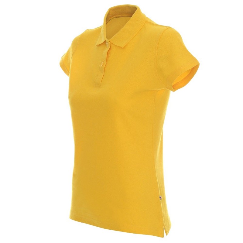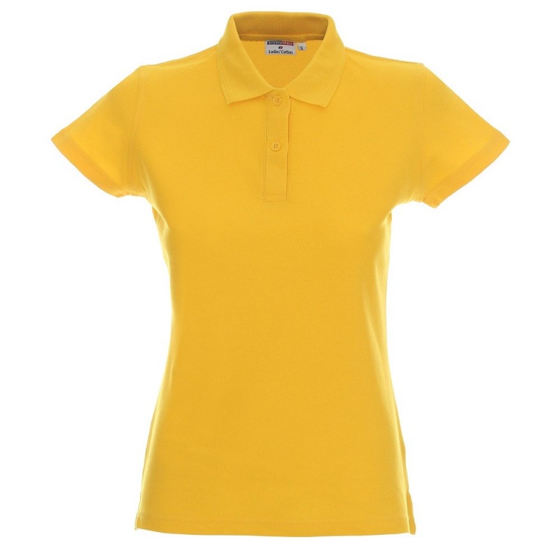 Damska koszulka polo Promostars Ladies Cotton 42195 w kolorze żółtym. Wykonana z wygodnych i jednoczesnie wytrzymałych materiałów. Taliowany krój doskonale dopasowuje się do damskej sylwetki. Doskonała odzież również pod znakowanie firmowym logo