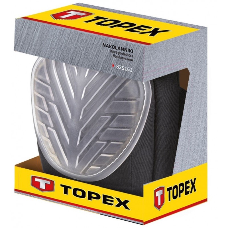Nakolanniki TOPEX (nr ref. 82S162) zapewniają ochronę kolan przed obiciami i otarciami. Wykonane z miękkiej gumy. Plastikowa nakładka niweluje nierówności, co znacznie poprawia komfort pracy. Dodatkową ochronę zapewniają wkładki żelowe, które absorbują uderzenia. Elastyczne paski z neoprenu, regulowane za pomocą rzepów, utrzymują nakolanniki na miejscu zachowując wygodę użytkowania. Marka TOPEX skierowana jest do majsterkowiczów.