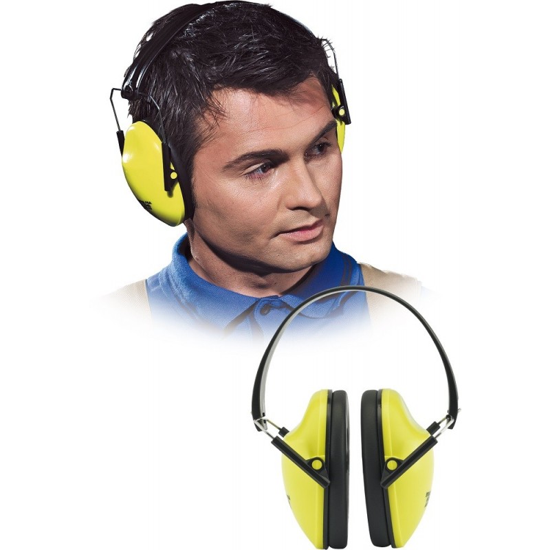 Ochronniki słuchu w seledynowym kolorze z czarnymi dodatkami.