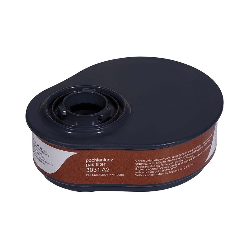 Pochłaniacze 3031 A2 chronią przed gazami i par substancji organicznych, których temperatura wrzenia jest wyższa niż 65°C.