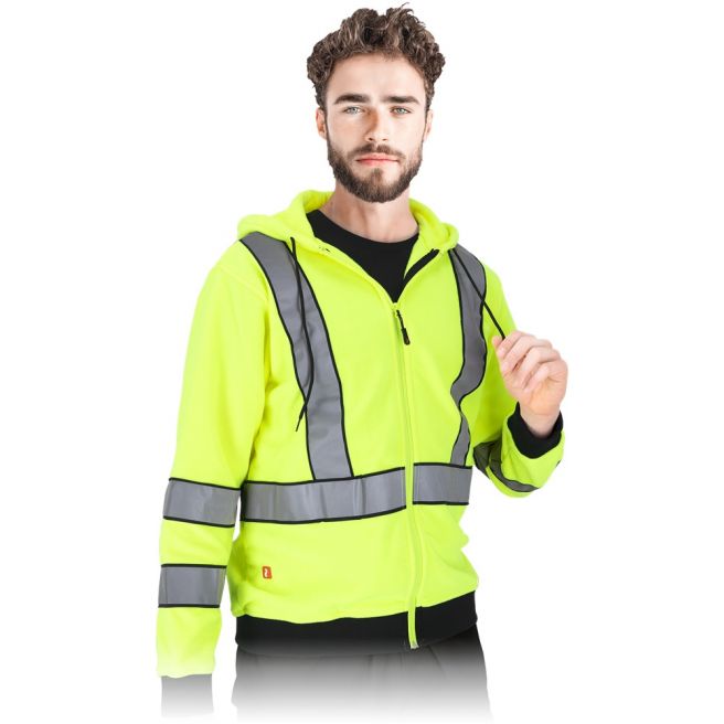 - tkanina we fluorescencyjnym kolorze i pasy odblaskowe zwiększające widoczność