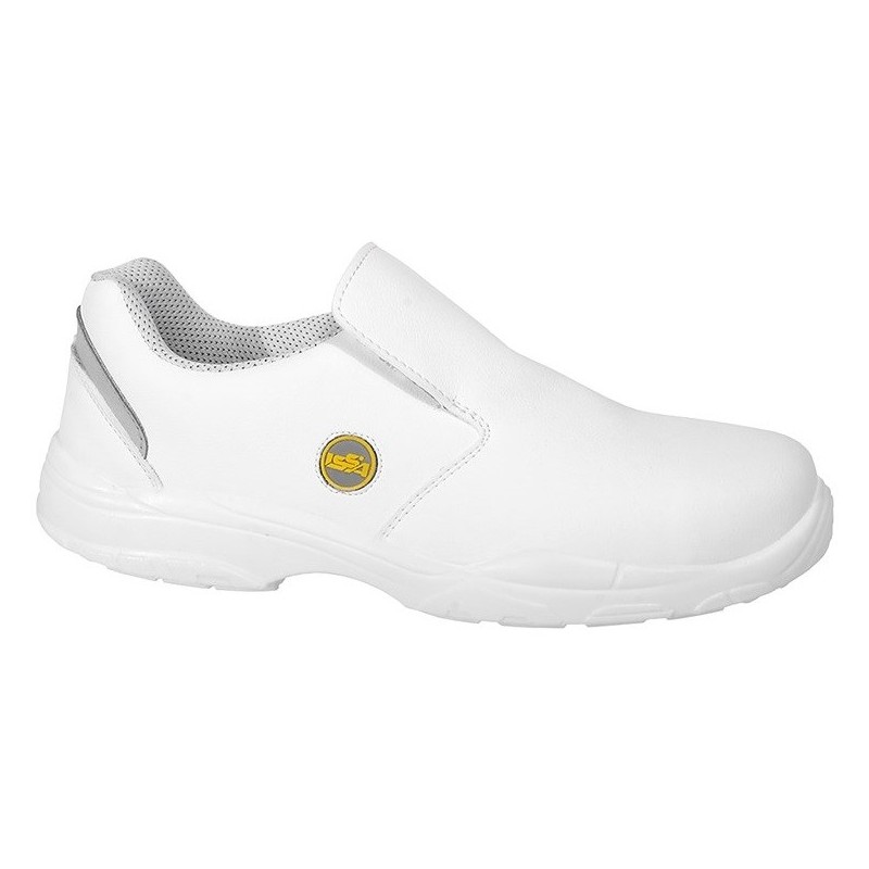Mokasyny ochronne z kompozytowym podnoskiem. Cholewa z mikrofibry. Przeznaczone do przemysłu spożywczego. Antypoślizgowa podeszwa z PU. Bardzo lekkie.