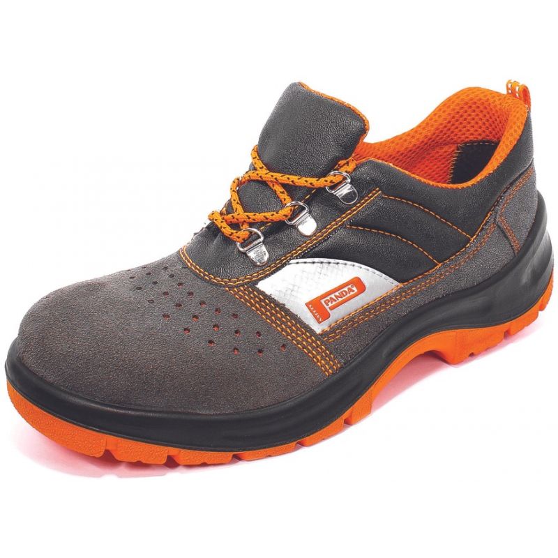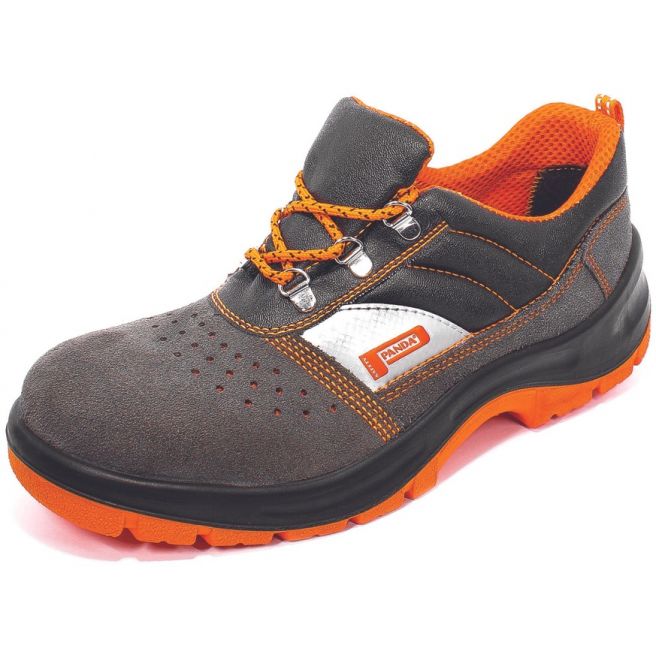 Buty robocze Panda Lambda Neos z nowej odsłony znanej kolekcji Basis. Obuwie w klasie S1 posiadająca antypoślizgową podeszwę (SRC) podwójnej gęstości, nierysująca podłoża, olejoodporną oraz antystatyczną. Buty przeznaczone do pracy w suchym środowisku, dzięki dodatkowym otworom wentylacyjnym cechują się niezbędną oddychalnością. Wykonane z zamszowej skóry bydlęcej z perforacją gwarantują wytrzymałość i komfort. Wewnątrz specjalna wyściółka siatkowa typu Aimet Mesh dobrze chłonąca pot i wilgoć gromadzące się wewnątrz buta. Buty wyposażone w metalowy podnosek ochronny zabezpieczający palce przed uderzeniami o sile do 15 kN