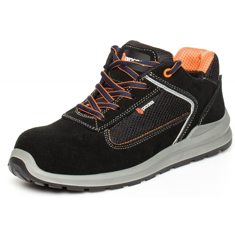 Półbuty ochronne SPRINT bez elementów metalowych, z kompozytowym podnoskiem ochronnym odpornym na uderzenia z energią 200 J i zgniecenia 15kN oraz kevlarową wkładką antyprzebiciową. Cholewka wykonana ze skóry welurowej. Wstawki w cholewce oraz wyściółka z materiału 3D Mesh który doskonale wentyluje stopę oraz zapewnia wysokie właściwości higieniczne. Wstawki z materiału odblaskowego. Wkładka wewnątrz buta dodatkowo posiada w części piętowej i palcowej miękką piankę EVA co poprawia komfort użytkowania. Podeszwa z dwugęstościowego poliuretanu PU/PU, antyelektrostatyczna, antypoślizgowa i olejoodporna. Absorpcja energii w części piętowej. Sportowy design. METAL FREE – brak elementów metalowych. Kategoria S1P SRC. Spełnia wymagania normy EN 20345.