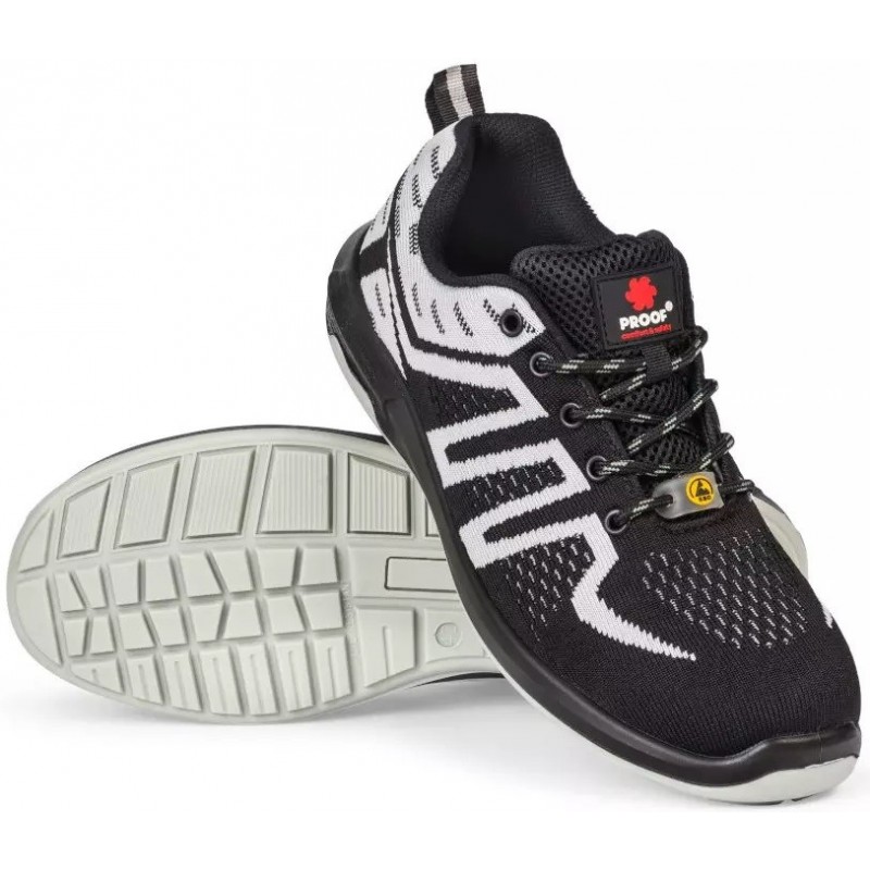Półbuty robocze ESD o klasie ochronności S1. Komfortowe półbuty ochronne, wykonane z szarego materiału tekstylnego, który charakteryzuje się wysokim poziomem cyrkulacji powietrza oraz właściwościach przeciwpoślizgowych SRC i klasie ochronności S1.
