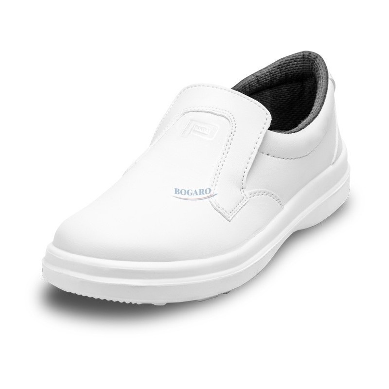 Mokasyny ochronne, antystatyczną podeszwą z PU odporną na olej i z dobrymi parametrami antypoślizgowymi, tłumieniem w okolicach pięty, cholewką z mikrowłókna, z podszewką z zabezpieczeniem antybakteryjnym SANITIZED.