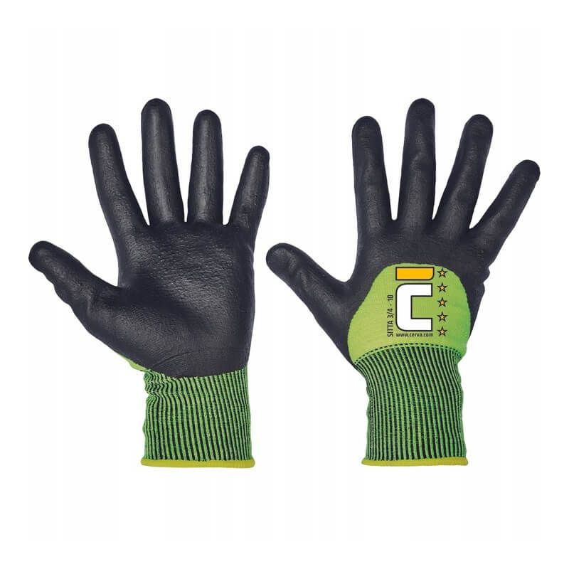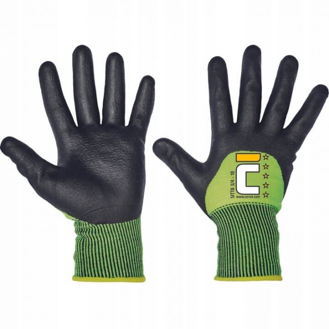 Dziane, bezszwowe rękawice. Odblaskowy kolor zwiększa widoczność użytkownika. W 3/4 oblane nitrylem, dzięki czemu są olejoodporne. Kompatybilne z zarękawkiem antyprzecięciowym Glareola.