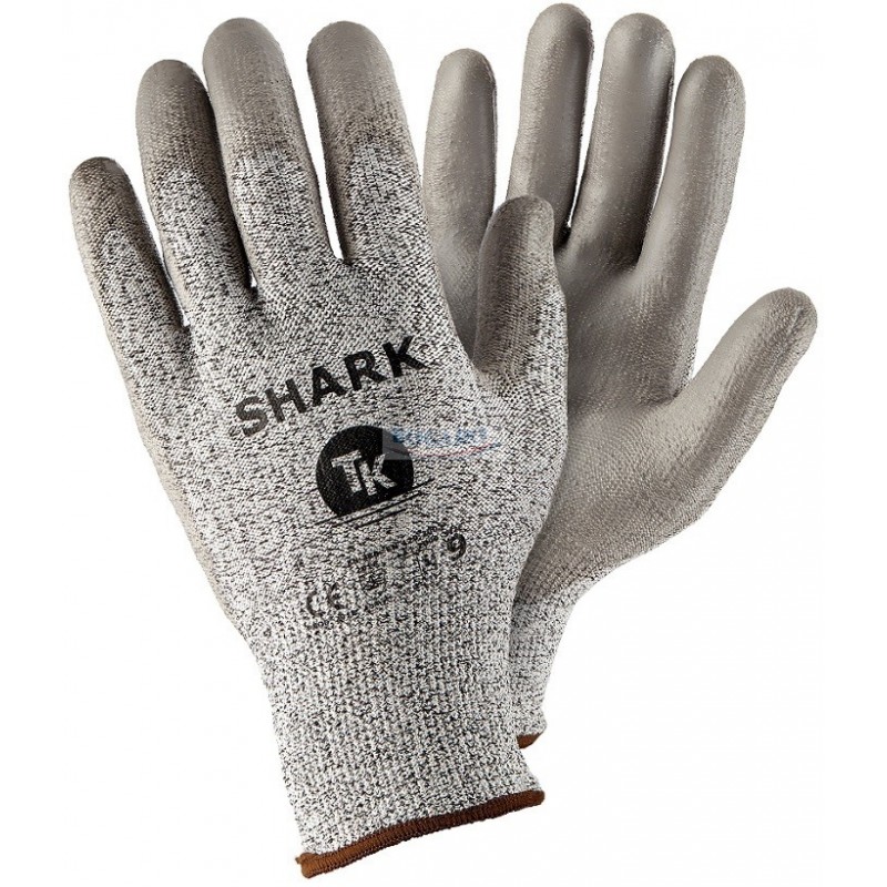 Rękawica antyprzecięciowa, dziana ze splotu włókien polietylenowych o ultra wysokiej wytrzymałości (UHPPE), włókna szklanego i miękkich włókien elastycznych typu spandex, pokryta poliuretanem.