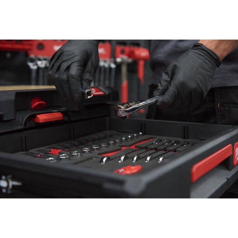 Nitrylowe rękawiczki jednorazowe Milwaukee to doskonały produkt dla wszystkich profesjonalistów. Specjalny diamentowy wzór na cześci chwytnej zwiększa przyczepność dłoni do przedmiotu zwiększając precyzję operowania i bezpieczeństwo pracy. Oprócz tego produkt zapewnia też skuteczną ochronę przed substancjami chemicznymi. Model szczególnie dobrze sprawdzi się w mechanice i wszelkich pracach warsztatowych.