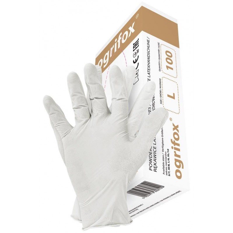 Rękawice lateksowe, pudrowane.