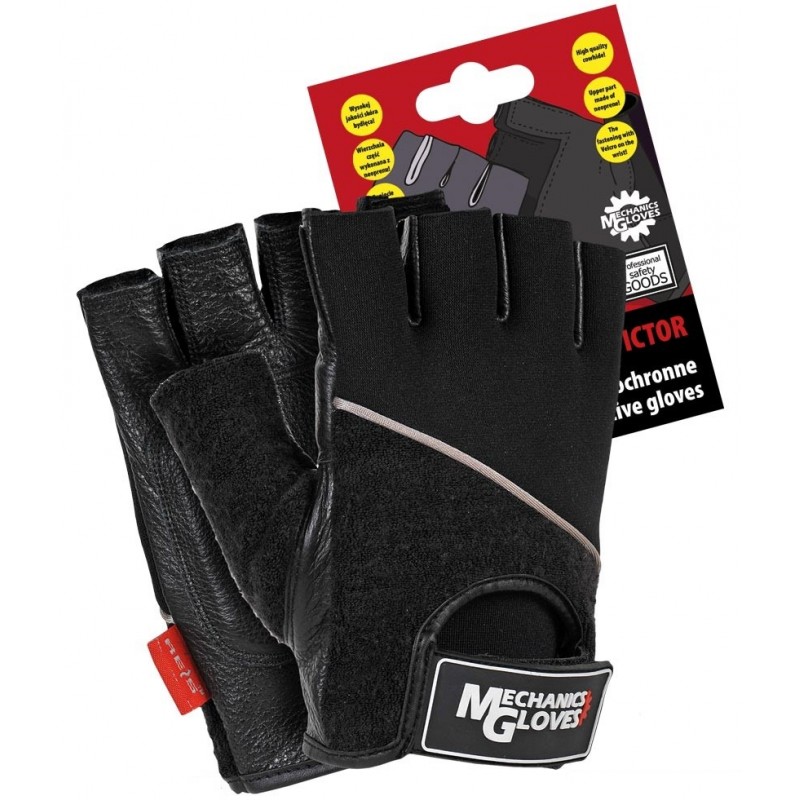 Rękawice ochronne wykonane z wysokiej jakości skóry bydlęcej połączonej z tkaniną, bez końcówek na palcach.