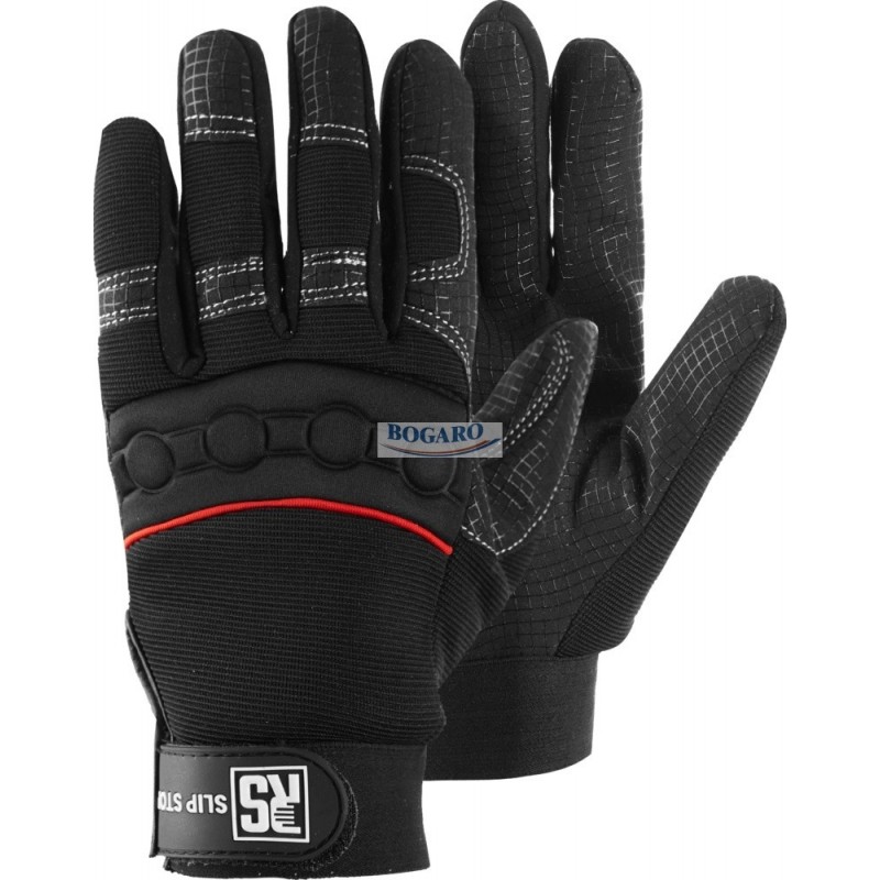 RS SLIP STOP – wysokiej klasy rękawice sportowe. Wykonane z syntetycznej skóry pokrytej siatką silikonową zapewnia doskonałą chwytność. Perforacja pozwala na oddychanie i zmniejsza potliwość dłoni. Elastyczny materiał dopasowuje się do dłoni zapewniając komfort. Wysokiej klasy wykończenie. Sprzedawana również na pary.