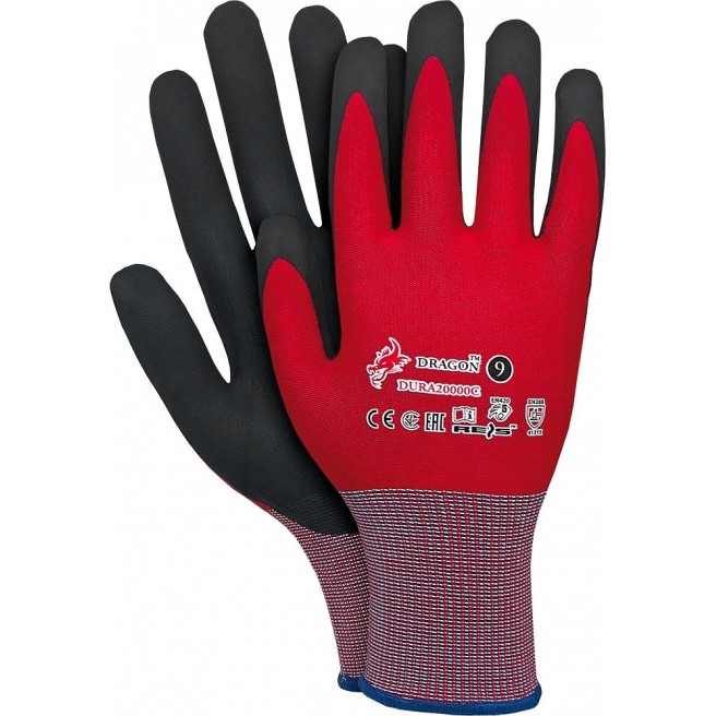 Rękawice ochronne wykonane z nylonu, powlekane nitrylem.