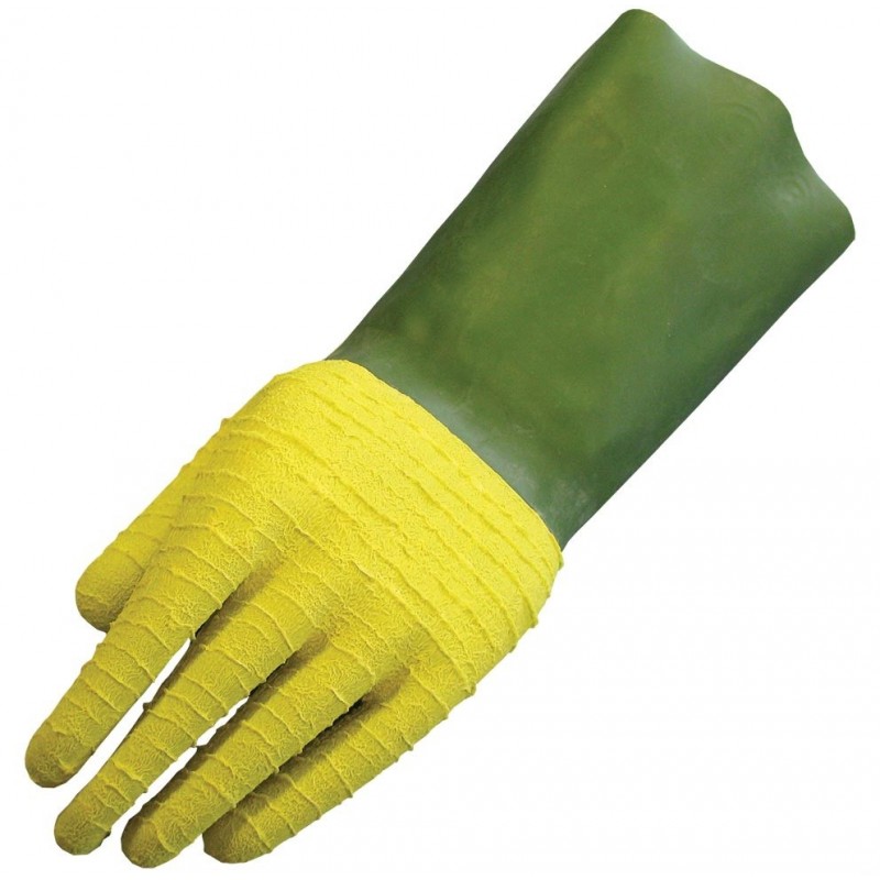 -rękawice dwuwarstwowe, co oznacza, że zostały podwójne maczane w mieszance lateksowej w kolorach zielonym i żółtym