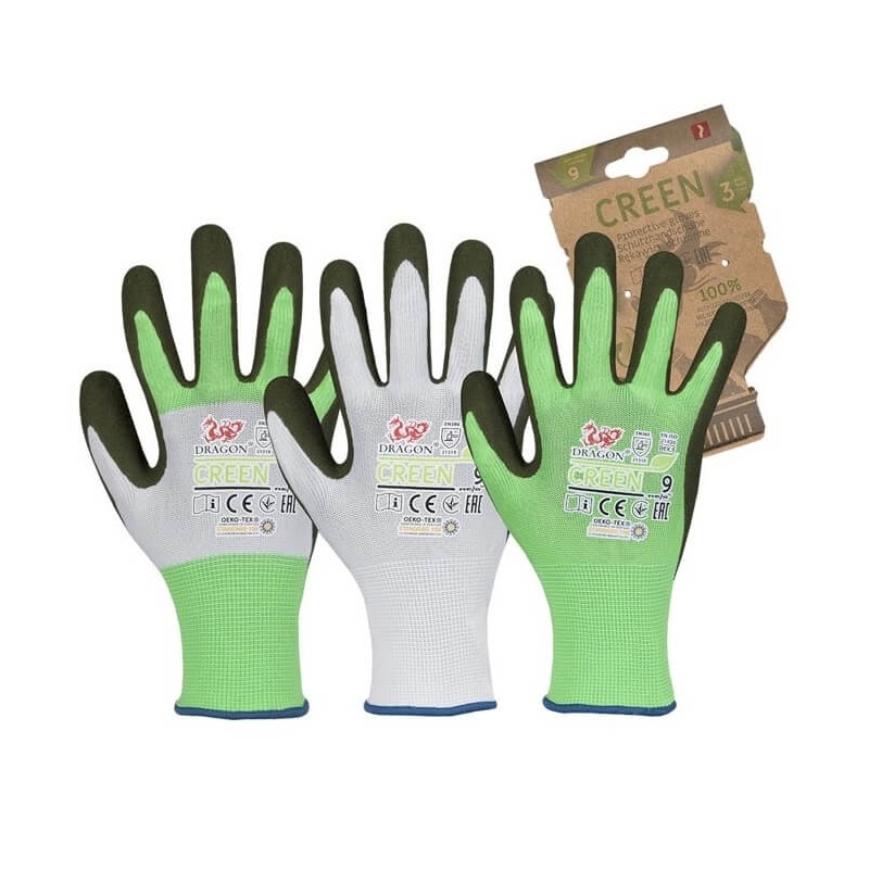 CREEN to wygodne rękawice ochronne z lateksowym powleczeniem. Wykonane z poliestru uzyskanego ze 100% recyklingu. Pakiet zawiera 3 rękawice w różnych kolorach.