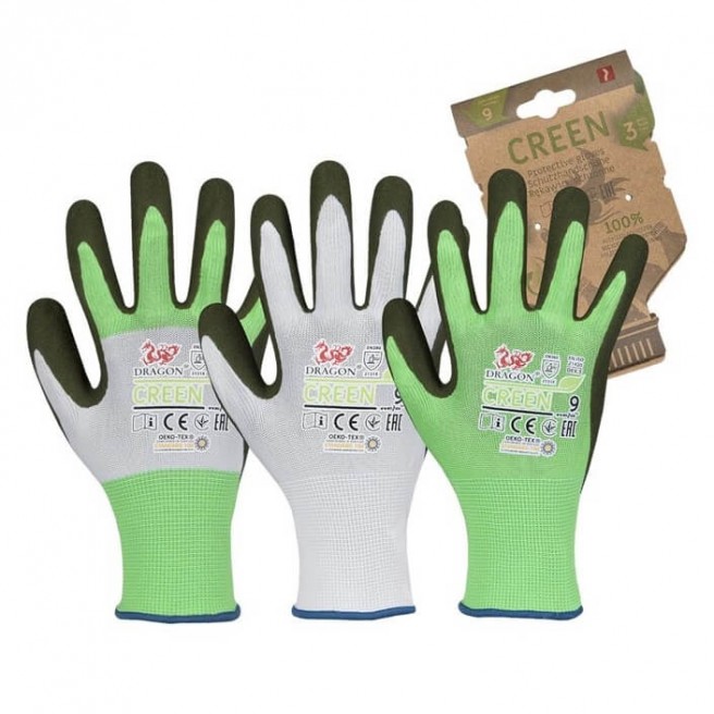 powlekane lateksem typu FOAM w kolorze ciemnozielonym