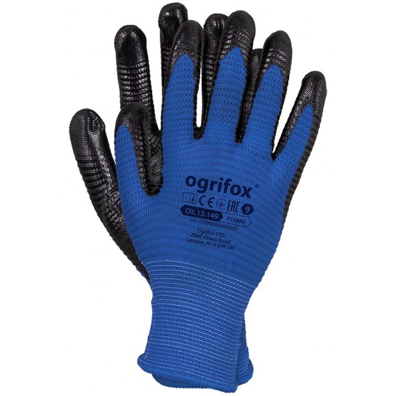 Rękawice ochronne powlekane nitrylem.