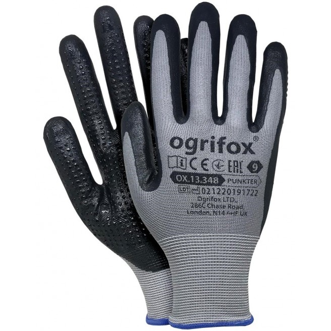 Rękawice ochronne wykonane z poliestru, powlekane nitrylem.