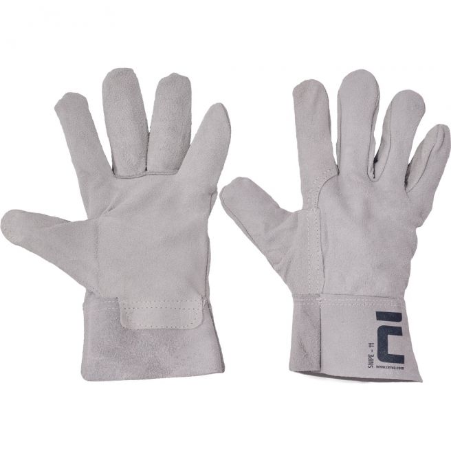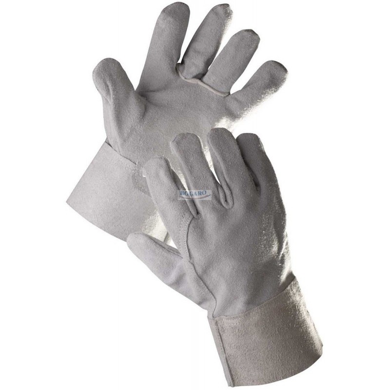 Rękawice całoskórzane bez podszewki, z dwoiny wołowej, ze sztywnym mankietem o szerokości 7 cm.